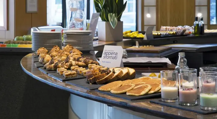 "A modern hotel with simple, airy guestrooms. There is an open-plan layout that encompasses a number of sitting areas in one large space. Excellent breakfast."