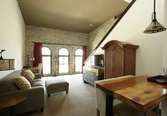 "21st-century loft living in a 19th-century Milwaukee brewery with a gastropub and fitness center." Full review