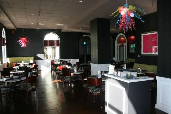 Across from Cathedral Square Park, this chic but casual restaurant has frequently changing art exhibits and serves big, juicy hamburgers and pork-chop sandwiches. — Fodor's