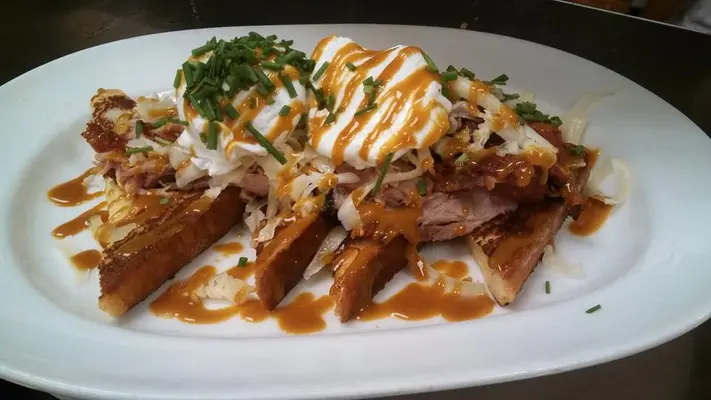 A wide cross-section gathers at this trendy spot in the Bay View neighborhood, where the menu is as eclectic as the decor. — Fodor's