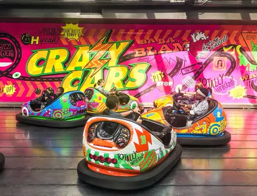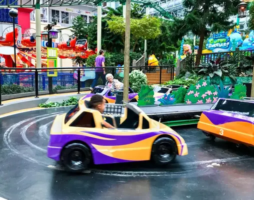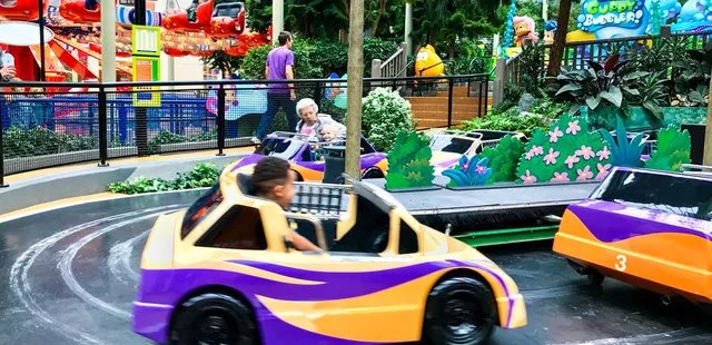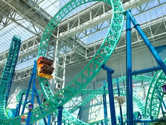 “This seven-acre indoor amusement park features more than 30 rides, arcade games, the Eats food court and attractions, including a SpongeBob roller coaster, Rugrats bumper cars and more Nick-themed fun.”