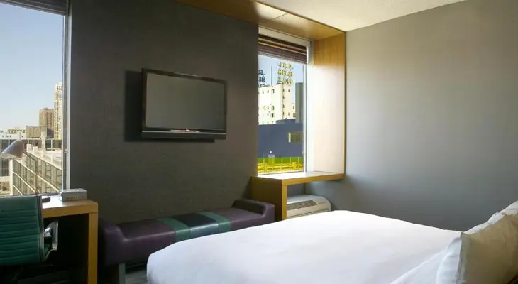 "Aloft's compact, efficiently designed, industrial-toned rooms draw a younger clientele. The clubby lobby has board games, a cocktail lounge and 24-hour snacks." Full review