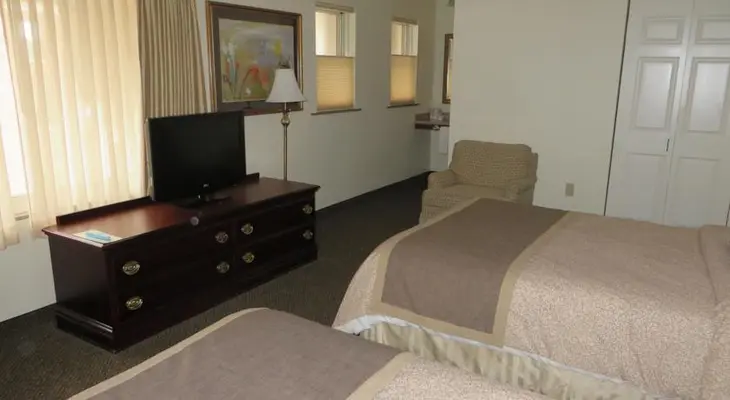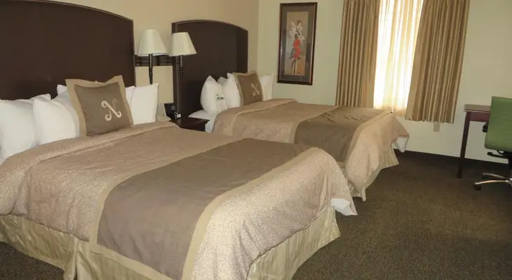 "The main lobby has some nice exposed wood beams and the warm colors (forest green and deep burgundy) of the sofas and chairs are inviting." Full review