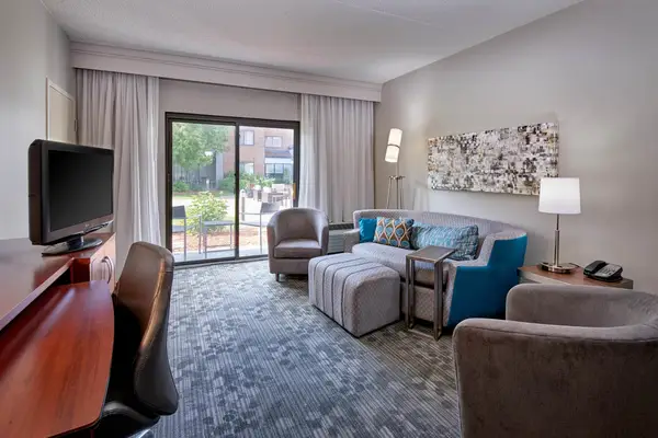 “This Courtyard by Marriott aims to offer its guests a quiet, residential atmosphere, and with its hushed halls and quietly smiling service, it feels less like a hotel than a very posh library.”