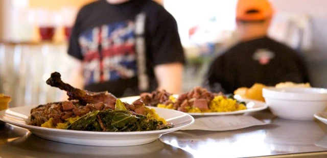 "Home cooking to James Beard Award-winning chef Alex Roberts means slow-roasted meats, collard greens with smoked chicken and pigeon peas with ham sofrito, among other things." Full review