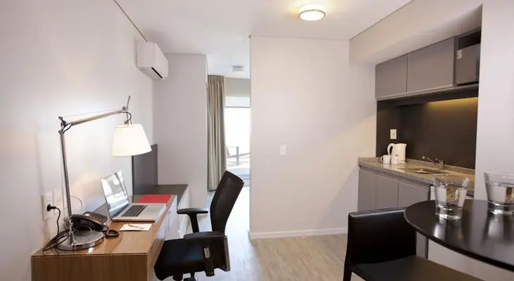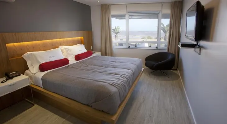“Situated in a residential area right across from the beach, about a 15-minute drive from the airport and a 20-minute drive from downtown Montevideo.”