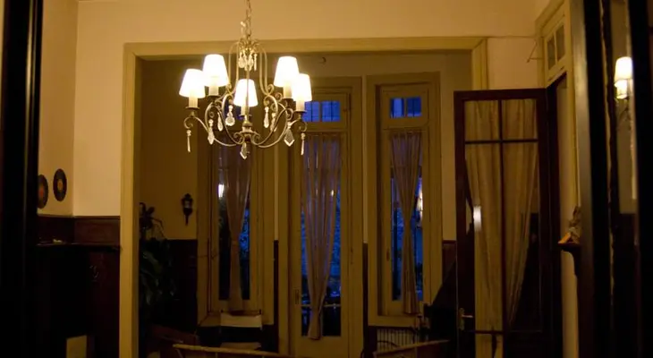 “Features high ceilings, beautiful wood floors, vintage architectural details, an on-site bar, a cozy music room and a grassy pool and patio area out back for lounging.”