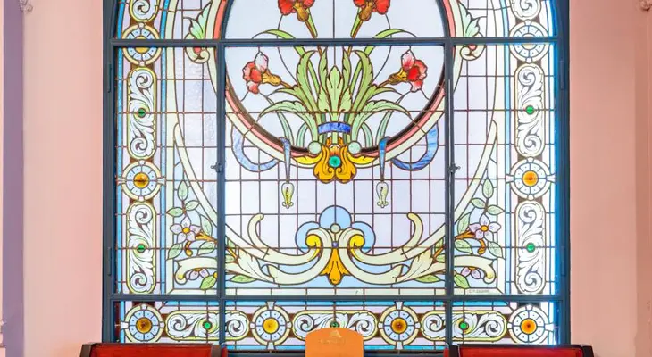 "The bathrooms are equally as dramatic, with Italian showers...all bedrooms have a small balcony. The excellent breakfast is served in a room with dark purple tiling and original stained glass. " Full review