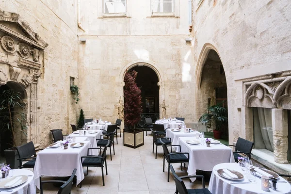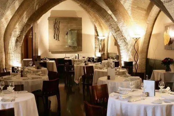 This restaurant with a 14C vaulted dining area is housed in a former dye works in the old town. — Michelin Guide