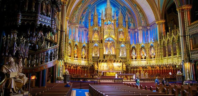 "Montréal's famous landmark, Notre-Dame Basilica, is a visually pleasing if slightly gaudy symphony of carved wood, paintings, gilded sculptures and stained-glass windows." Full review