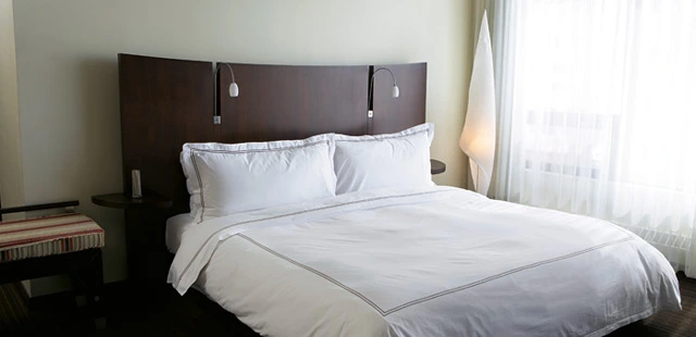 "Natural light, dark wood, glass and sleek lines. Snug but comfy rooms with all the amenities and stop-you-in-your-tracks views of the cityscape."