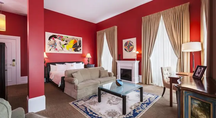 "This gorgeous boutique property, built as a bank in 1870, boasts guest rooms whose ceilings soar and whose traditional feel is enhanced with modern touches."