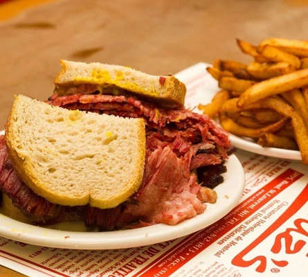 "Opened in 1928, this kosher-style Jewish deli marinates its meat for 10 full days before hot-smoking it." Full review