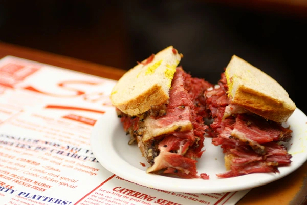 "A Montréal institution: a small, narrow deli serving up colossal smoked-meat sandwiches, with sometimes surly service thrown in as part of the package."