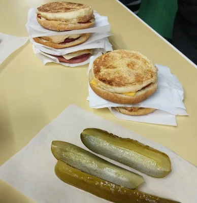"Their grilled salami and bologna sandwiches on a Pletzl roll with mustard continue to attract a steady flow to the simple lunch counter."