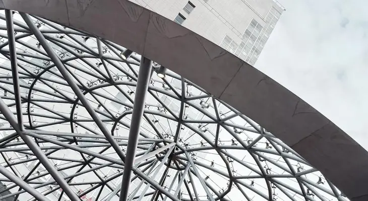 The spacious, two-story lobby is decorated with a sculpture that resembles a model of a molecule, typical of the Soviet-era decor throughout. — Fodor's