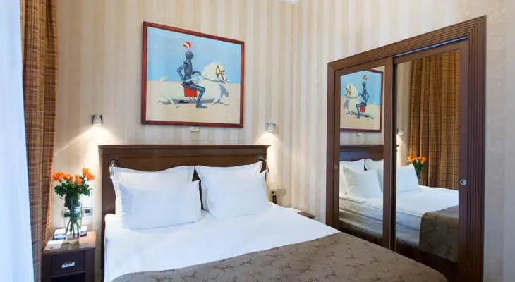 “This hotel has many rooms with balconies overlooking a quiet green residential neighborhood near Patriarch's Ponds.”