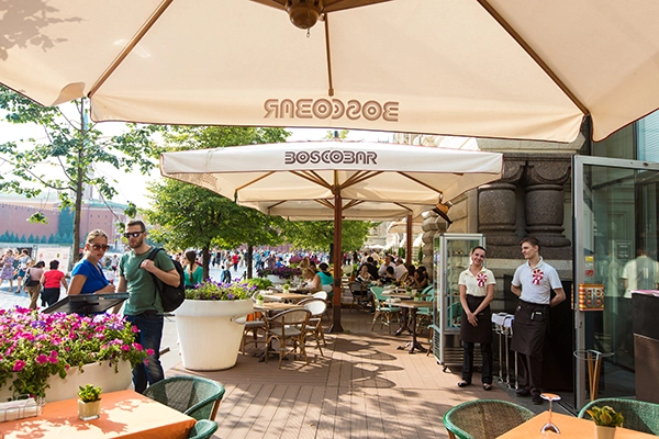 "Located within the beautiful GUM, Bosco haughtily lays claim to the only outdoor terrace taking up real estate on Red Square."