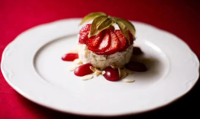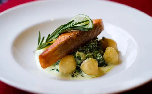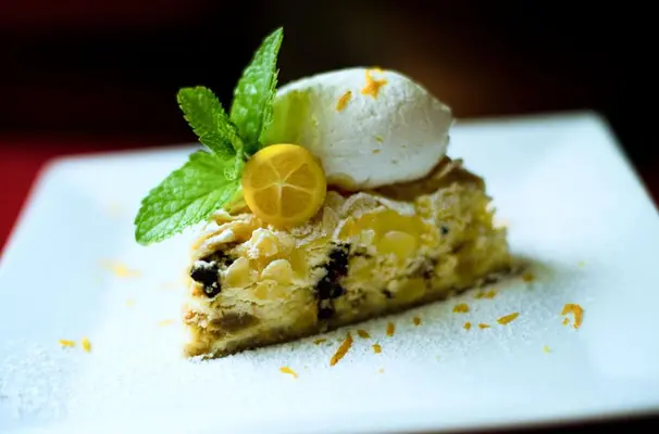 “Lurking behind an arch on a posh pedestrian street, this restaurant/bar/concert space is anything but chic.”