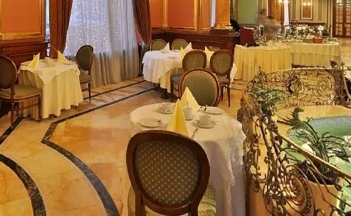 “Gilded chandeliers, ceiling paintings, and polished paneling invoke the spirit of prerevolutionary Russia, as do the best of the high-ceilinged rooms and spacious marble bathrooms.”
