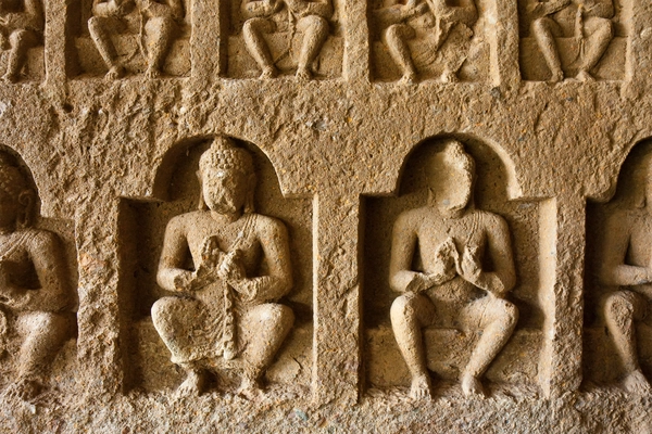 The caves comprise viharas (monasteries), chaityas (halls) and dwellings. — Lonely Planet