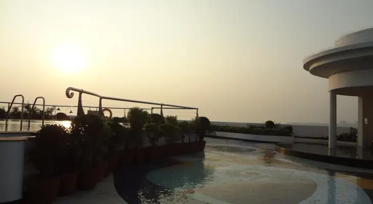 "Ritzy but small luxury hotel on the seafront, with the usual five-star facilities and a (pseudo) Art Deco atrium lobby topped by a glass-bottomed rooftop pool. र10,000."