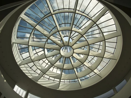 "The spectacular four-storey interior centres on a vast eye-like dome, which spreads soft natural light throughout blanched white galleries." Full review