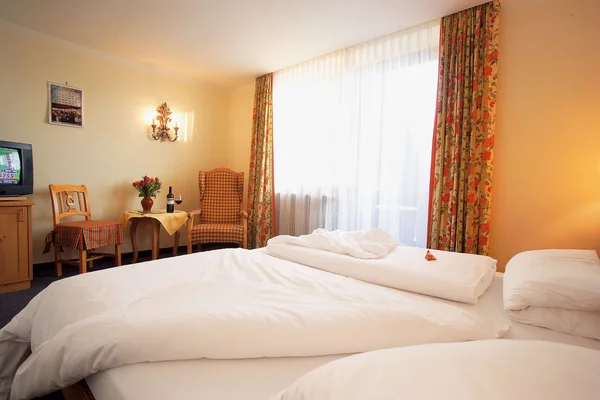 “In a parklike garden, the family-run Piushof has elegant Bavarian guest rooms, with oak and hand-carved cupboards.”
