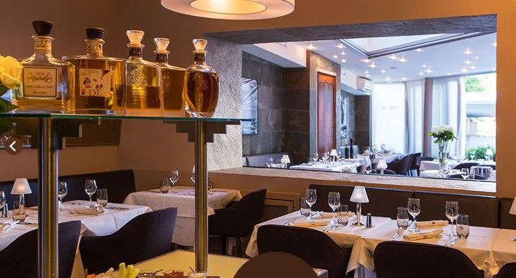 A separate entrance leads into this historic hostelry that started life as a ducal mill in 1573. Stylish Bavarian bar crowned by a vaulted ceiling. — Michelin Guide