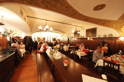 At this Munich mainstay for both locals and visitors, the vaulted, frescoed ceiling and the old stone floor recall the nearby Andechs monastery. — Fodor's