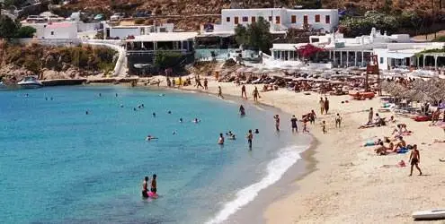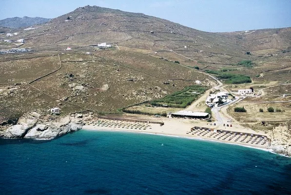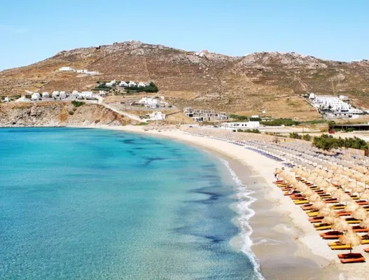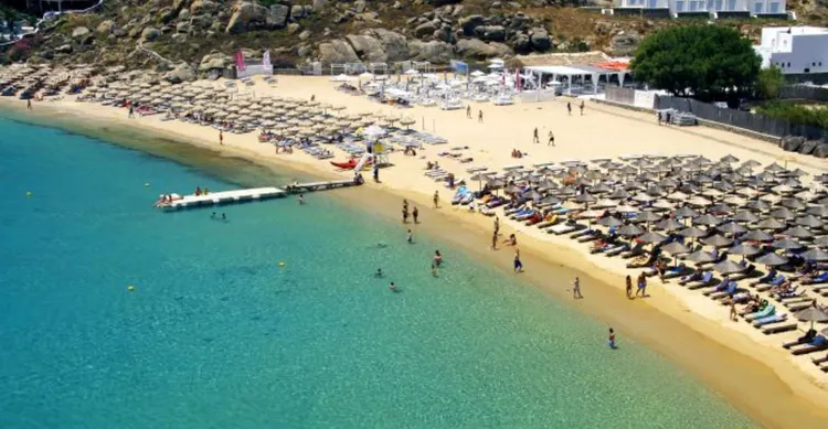 One of the most beautiful beaches on the island, which is about ten kilometers away from the town of Mykonos. It is the longest and best organized beach on the island. — Afar Magazine