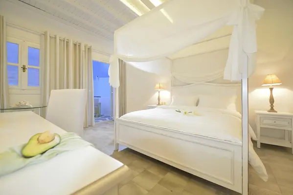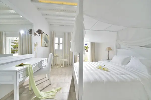 “This three-pearl, 70-room property is right opposite Platys Gialos Beach and has a relaxed atmosphere that attracts mostly couples and families.”