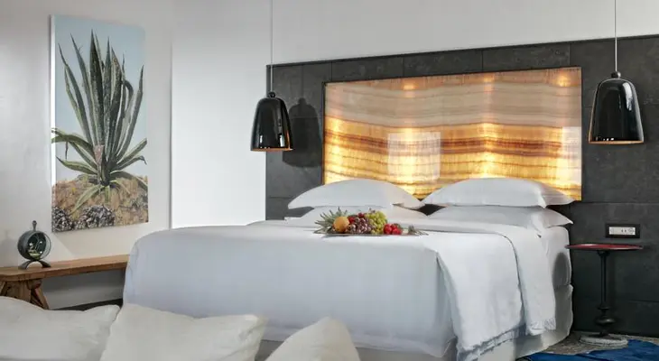 "The look is contemporary, full of contrasting black and white and vivid pops of color...many of the villas and suites have direct sea views, plunge pools, outdoor jacuzzis" Full review