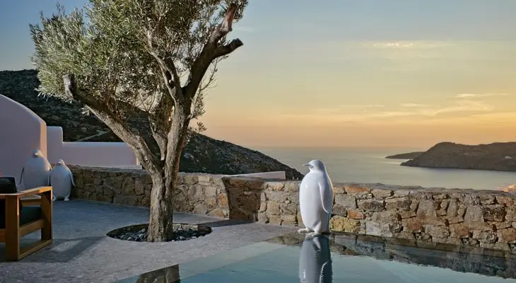 “Avaton is a design hotel set into the hillside, with quirky, luxurious sea-facing rooms – some with private infinity pools and hot tubs.”