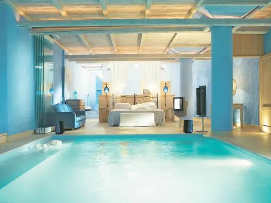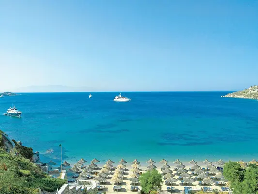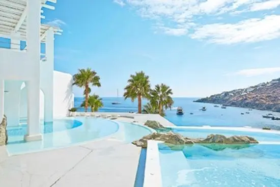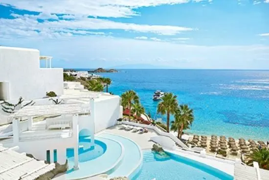 "Just steps from its own private corner of sandy Psarou Beach on Mykonos, the Grecotel Mykonos Blu is a spacious resort offering sparkling sea views, warm hospitality and indulgently relaxing spaces." Full review