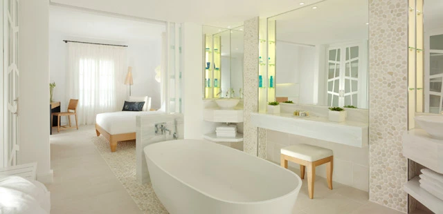 "Most of the rooms have views of the Aegean Sea, as do some of the bathrooms, which also come with deep soaking tubs and a separate walk-in rain shower and steam cabin." Full review