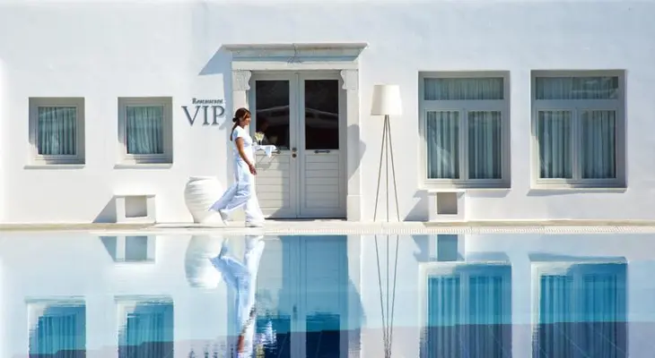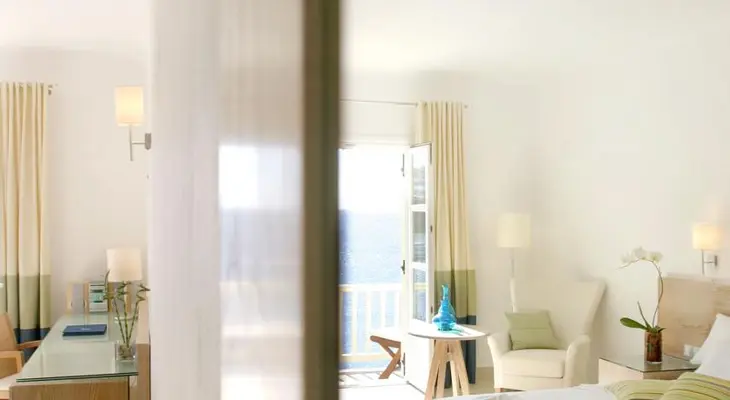 “Petasos Beach Hotel & Spa is a luxury property built in the traditional Cycladic architecture style that prevails on Mykonos.”