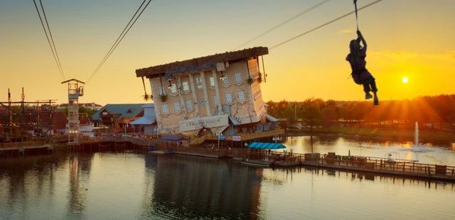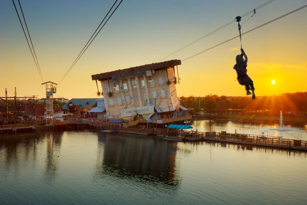 “Kids love this hands-on learning experience, beginning with the crazy-looking building itself—it’s upside down. Inside are over 100 high-tech games, interactive exhibits, and simulations.”