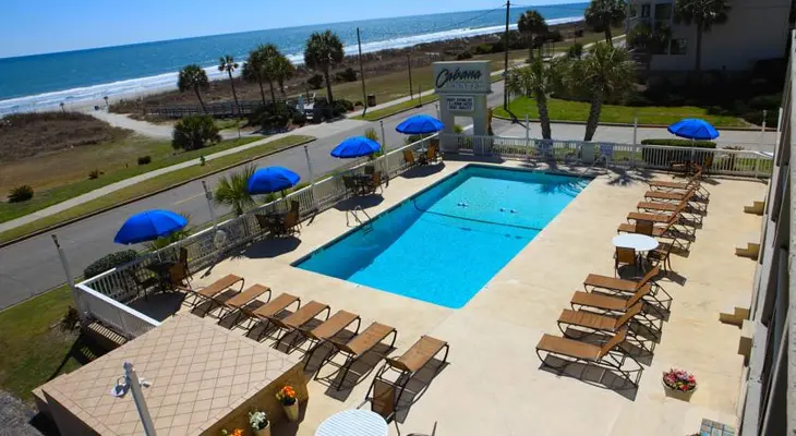 “In the quieter northern stretch of Myrtle Beach, Cabana Shores Hotel is a value property with 74 rooms and suites, including some with full kitchens, located directly across the road from the beach.”