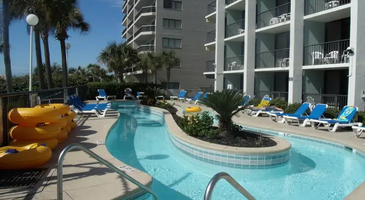 “Grande Shores is a combination of rentable condos with full kitchens and standard hotel rooms outfitted with refrigerators, coffeemakers, and, in a few cases, kitchenettes.”