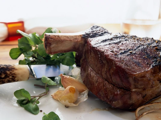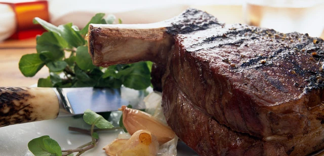 “As for what to pair with the wine, the food itself is equally robust: Chef Stephen Rogers produces a steakhouse-style menu that includes dry-aged red meats like an 18-ounce bone-in rib eye chop.”