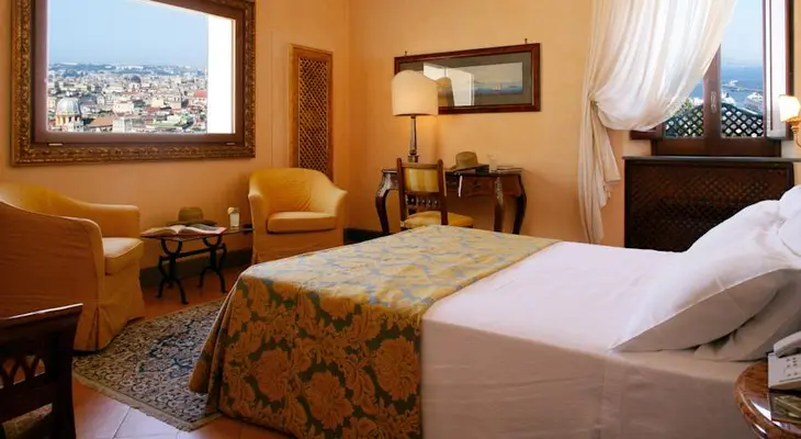 "Surprisingly spacious, simply decorated rooms, many with their own hot tubs and furnishings no monk would dream of. Also there are majolica-tile floors, and stunning views of the city below." Full review