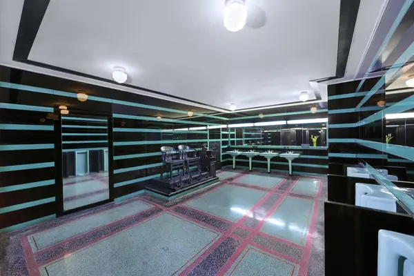 "Guests are greeted with Italian sienna marble at the entrance, wall panels of Russian walnut and Persian rugs."