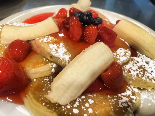 "Hung-over college kids, tourists, and families commute for this bustling eatery, offering fluffy, melt-in-your-mouth pancakes topped with prepared fresh daily syrups."