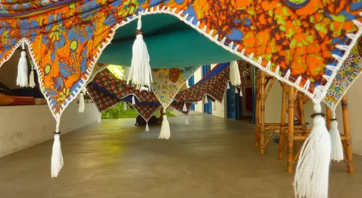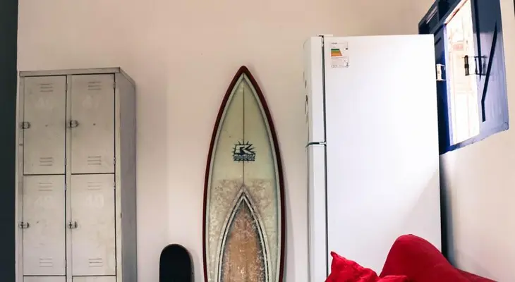 "Stylish hostel in a quiet area a short walk high above the beach, with an all-white-and-blue Mediterranean-like colour scheme and cosy common areas."