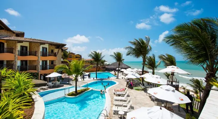 “At the end of Ponta Negra Beach, this resort offers extensive facilities, family-oriented entertainment, and the chance to unwind in the blazing northeastern sun in one of the six swimming pools.”