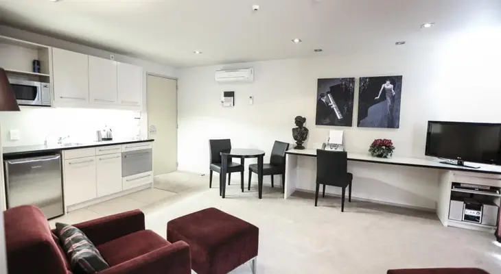 “This modern, Italian-tinged motor lodge offers stylish and comfortable studio, one-, two- and three-bedroom apartments within a block from the city centre.”