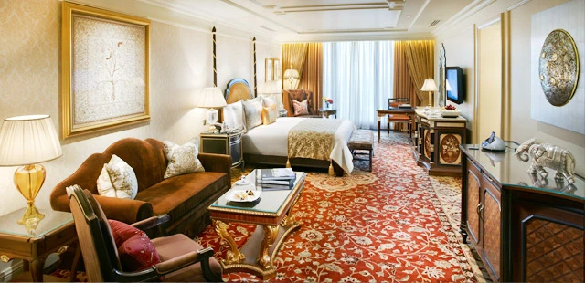 "For a truly over-the-top hotel stay in New Delhi, look into one of The Leela Palace's 18 suites, which come with butler service and access to the Royal Club Lounge on property."
