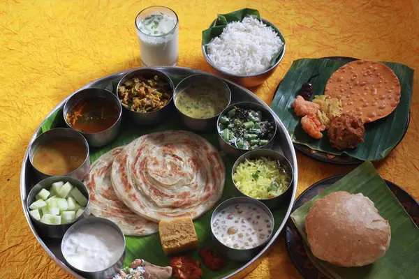 This fantastical restaurant, hand-painted by temple artists flown in from Kerala, resembles a temple. — Condé Nast Traveler