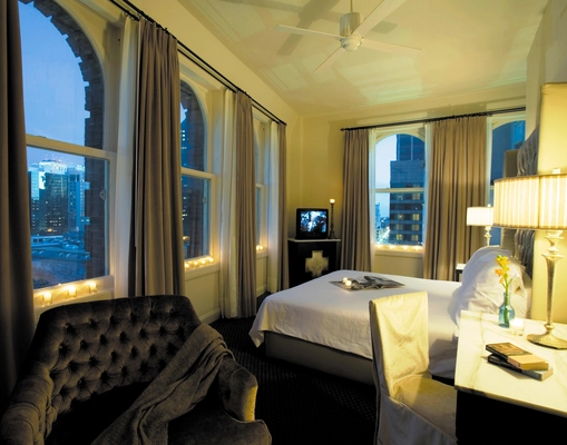 Ample windows give a wide-screen feel to the corner rooms, but ask for a higher-floor assignment to minimize morning street noise.